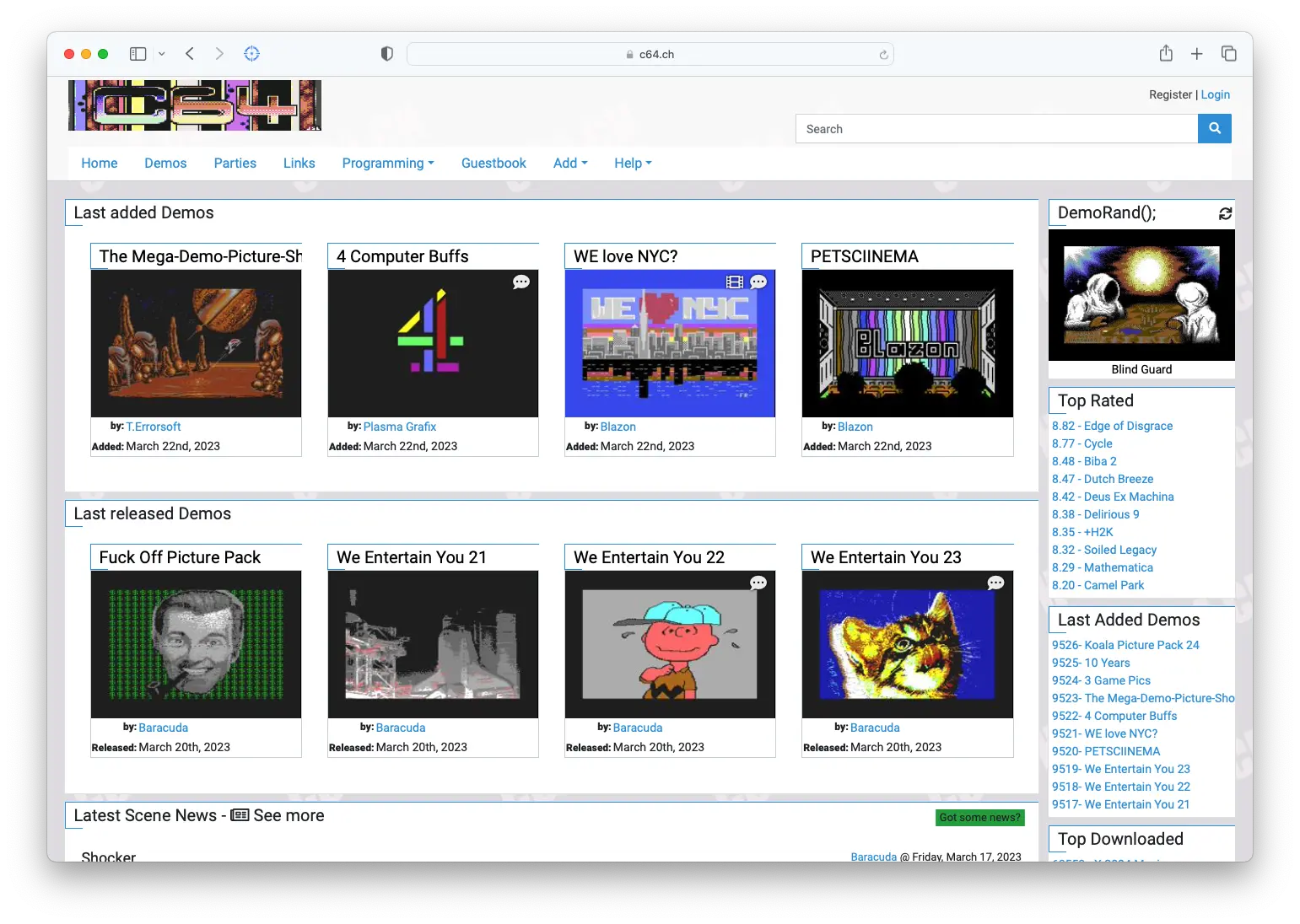 pouet.net, demozoo.org, c64.ch, and csdb.dk demonstrate which features a good demo archive should have.